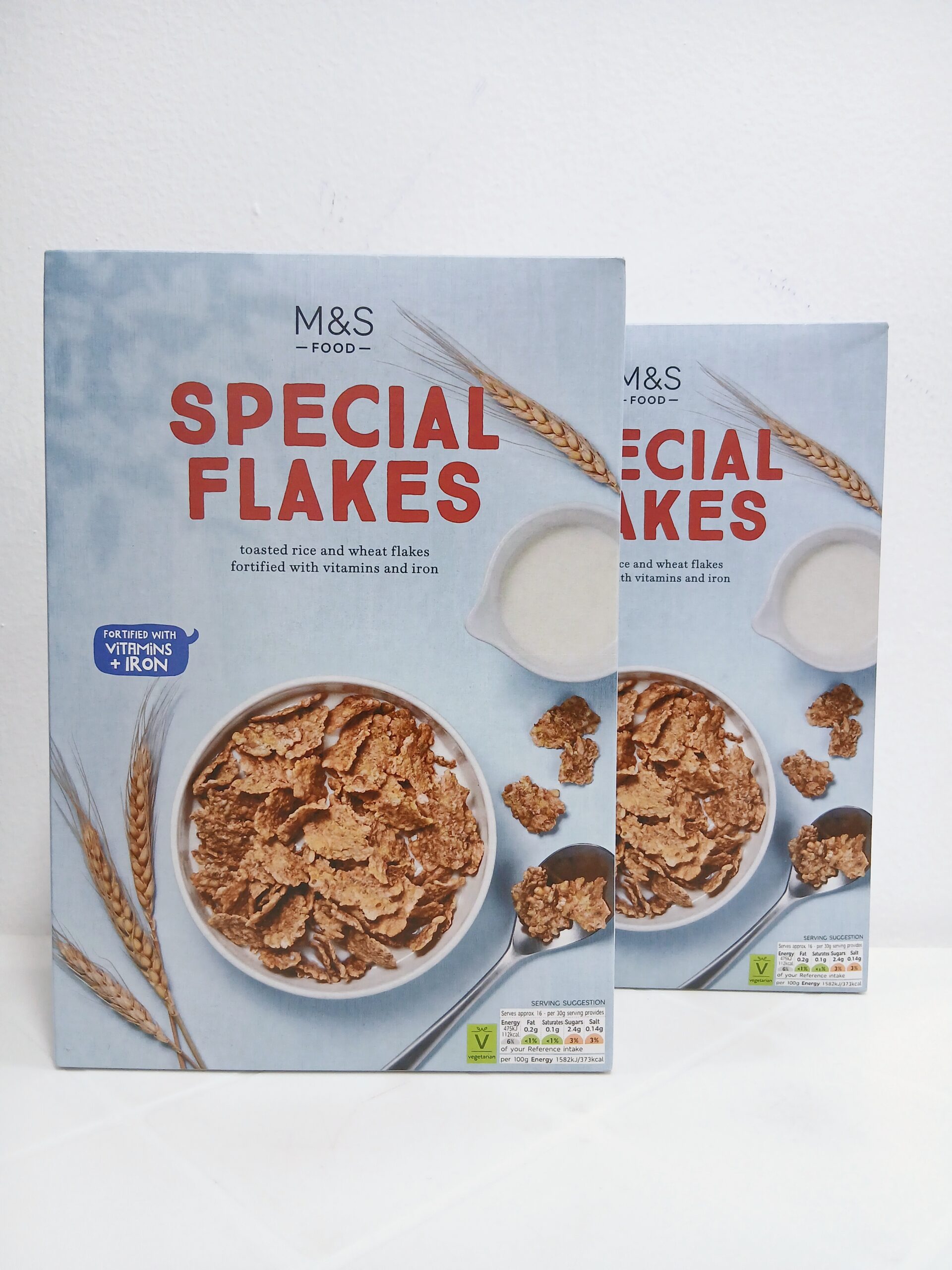 This is a toasted rice and wheat flakes fortified with  Vitamin and iron.